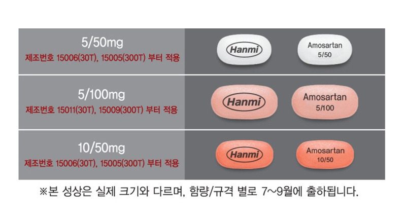 레이저 인쇄방식을 적용한 아모잘탄은 5/50mg, 5/100mg, 10/50mg 등 3가지 함량과 30T, 300T 등 2가지 규격별로 7~9월 사이에 순차적으로 출하될 예정이다.