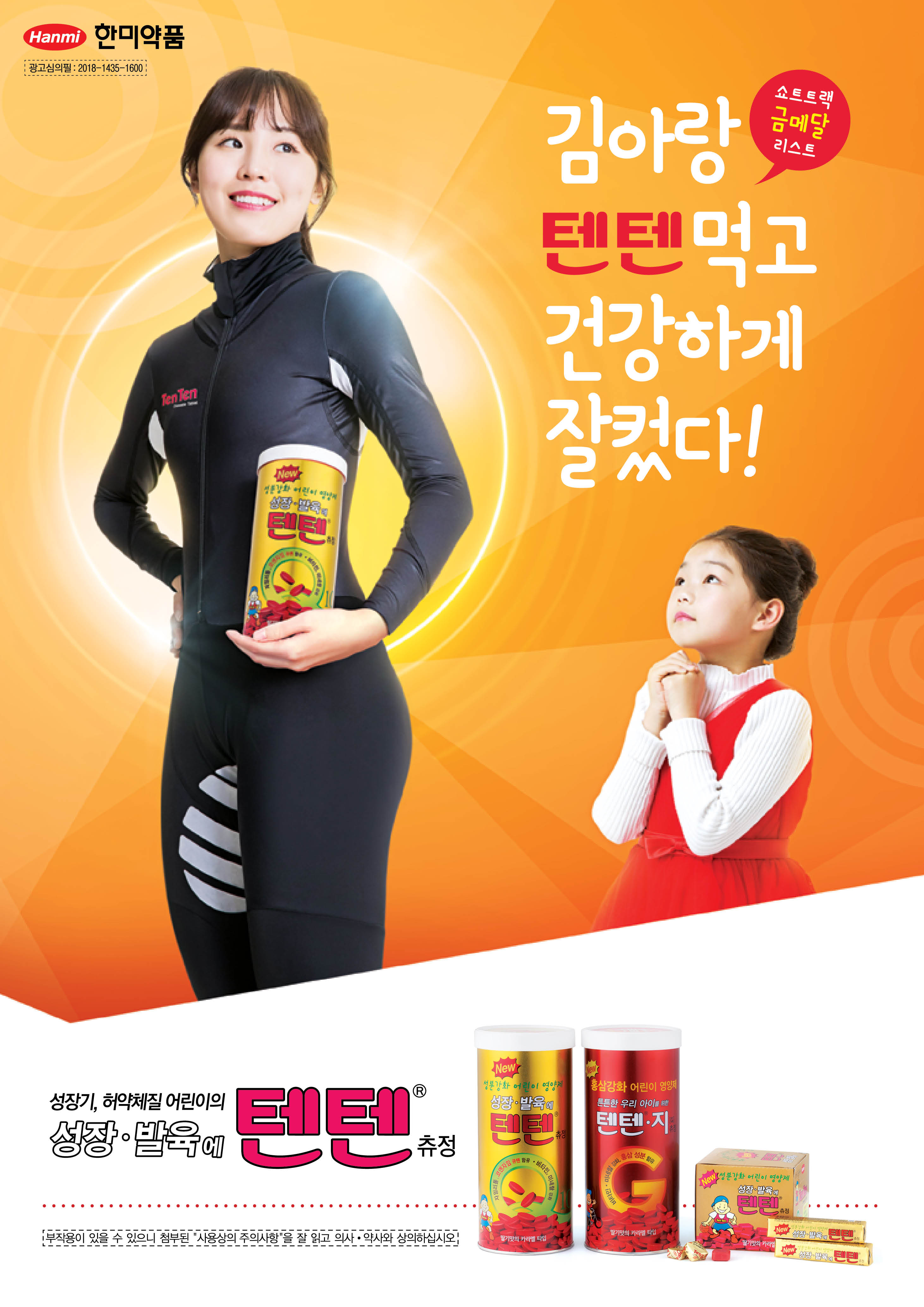 한미약품이 지난달 말 쇼트트랙 금메달리스트 김아랑 선수를 ‘텐텐’ 모델로 발탁했다는 소식과 맞물려 약국가의 텐텐 판매량이 급증하는 추세다.