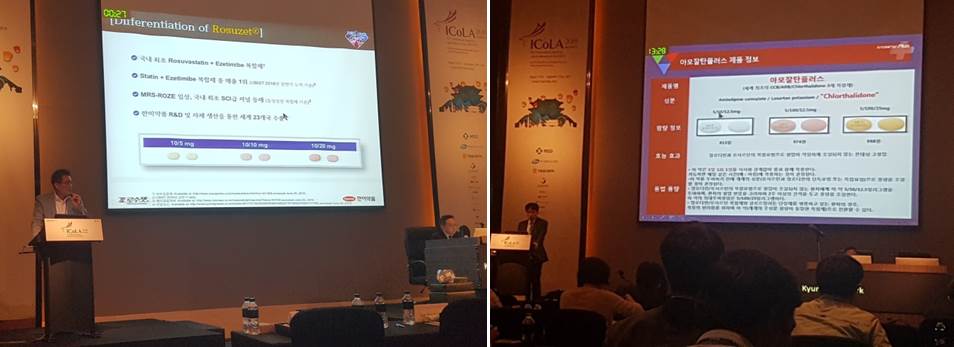 한미약품이 개발한 이상지질혈증 치료 복합신약 ‘로수젯’과 고혈압치료 3제 복합신약 ‘아모잘탄플러스’의 임상 결과가 지난 31일 열린 한국지질·동맥경화학회(이하 KSoLA, The Korean Society of Lipid and Atherosclerosis) 산학세션에서 발표됐다.