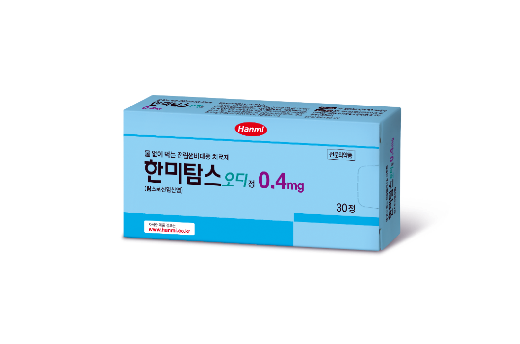 ‘한미탐스오디정0.4mg(성분명 Tamsulosin HCI)’은 국내 최초로 개발된 고용량 탐스로신 구강붕해정으로, 물 없이도 입안에서 녹여 복용 할 수 있고, 캡슐을 목으로 넘기지 않아도 돼 복용이 편리하다.