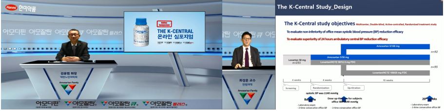 온라인 심포지엄은 지난달 24일 열렸으며, 한미약품의 대표 고혈압치료 복합신약 제품군인 ‘아모잘탄패밀리’의 The K-Central 임상연구와 순환기 질환 치료의 최신 지견 등을 공유하는 자리로 마련됐다.