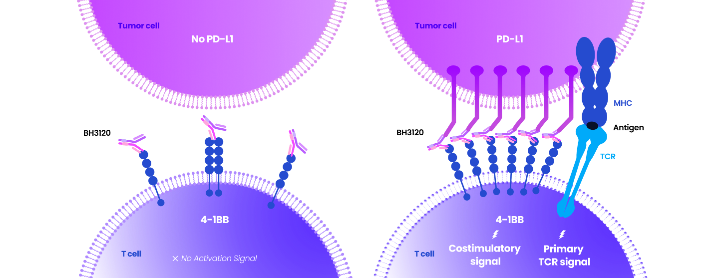 BH3120은 암세포 표면에 위치한 PD-L1와 면역세포 표면의 4-1BB를 동시 타깃 하는 이중항체
