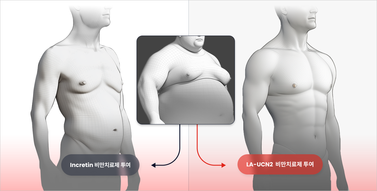 인크레틴 요법은 효율적인 체중 감량에도 불구하고 상당한 제지방량 감소와 체중 감량의 질(weight loss quality, WLQ) 저하를 초래하기 때문에, WLQ 개선을 위한 새로운 치료법 개발은 현 비만 시장에서 큰 관심사입니다. 한미는 이러한 궁극적인 목표를 달성하기 위해 LA-UCN2 프로젝트를 시작했습니다. HM17321은 한미의 과학적 전문성에 최신 AI 및 구조 모델링 기술을 결합해 발굴한 신개념 비만치료제이며, 지속형 기술이 적용된 corticotropin-releasing factor 2 (CRF2) 수용체 선택적 urocortin-2 (UCN2) 유사체입니다.
