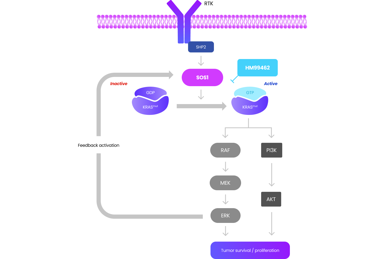 HM99462는 KRAS와 SOS1의 상호작용을 저해하는 신규 SOS1 저해제입니다.