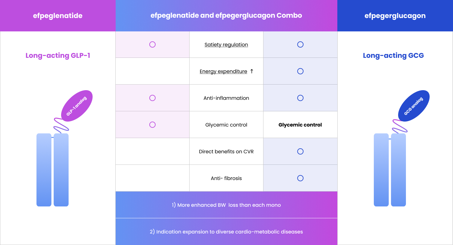 LAPSGlucagon Combo는 에페거글루카곤(LAPSGlucagon 유사체)과 에페글레나타이드(LAPSExd4 유사체)로 구성된 신약 후보물질입니다.